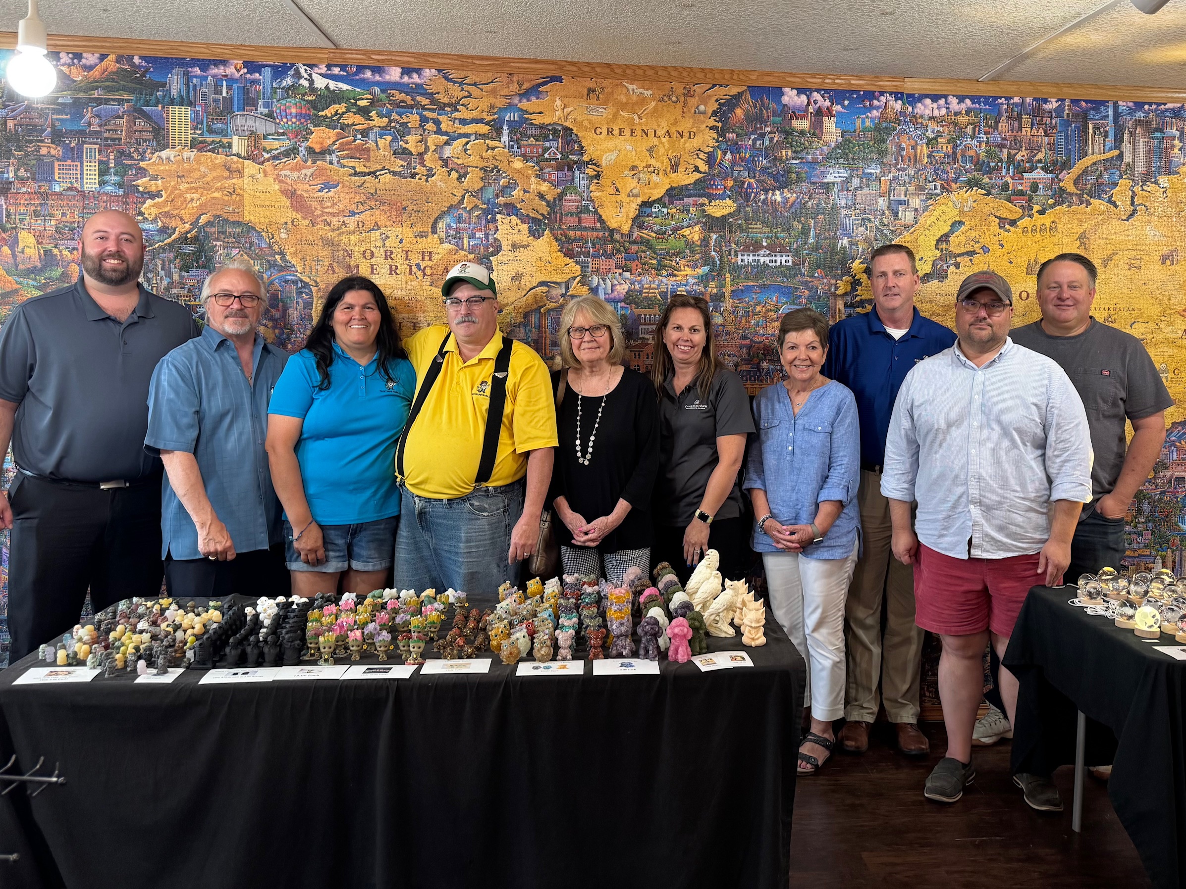 The Casey Rotary Club toured the Rock Shop on Main Street in downtown Casey on Tuesday, following a presentation by owner Jeff Winnett at Tuesday’s Rotary Club meeting at Richards Farm. Pictured (l to r) in front of the World’s Largest Jigsaw Puzzle are Chris Snedeker, Jay Marwell, Teresa Winnett, Jeff Winnett, Marcy Mumford, Megan Peavler, Sharon Durham, Kurt Squires, Tom Daughhetee, and Brian Hancock.