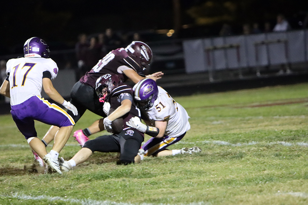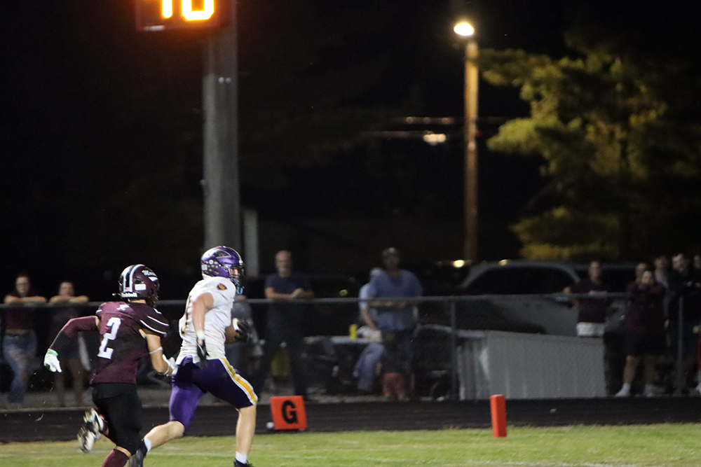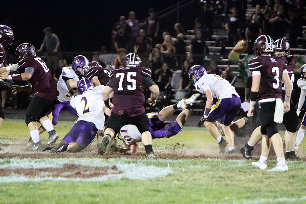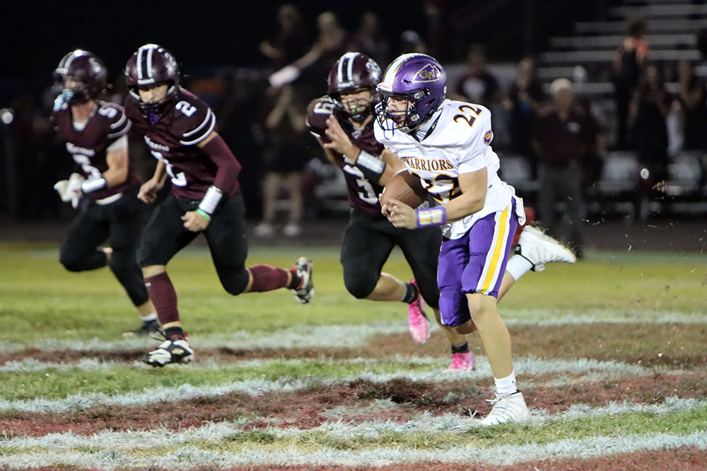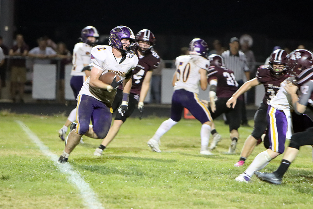 The Warrior defense bent a little, but didn’t break as they allowed Robinson across mid-field, but a huge stop by Weston Hupp on fourth down forced the Maroons to turn the ball over.