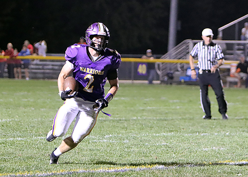 The Warriors’ offense went to work. After two runs by Nick Fouty moved the chains, he converted a crucial 4th-and-1 to keep the drive alive. Four plays later, Karras rumbled across the goal line from four yards out for the first score of the night. Wyatt Erickson’s extra point was good, giving the Warriors an early 7-0 lead.