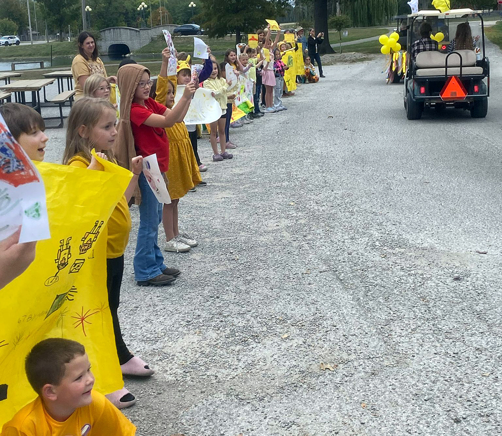 In a truly heartwarming moment, the Monroe school community came together to celebrate a special gift for student Kady Towles. Through the incredible generosity of the Make-A-Wish Foundation, Kady was presented with a brand new golf cart. The surprise was revealed during a joyful golf cart parade through the park, creating a memorable spectacle for everyone involved. To share in the celebration, the second-grade students and Mrs. Kibler’s class were invited to join the festivities. In a show of support, students wore yellow and were treated to a special “yellow” snack and drink, blanketing the event in a color that represents happiness and hope.