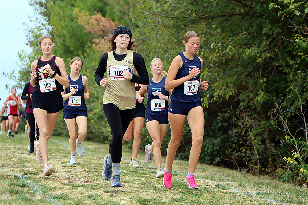 Featured photo caption: Kaitlyn McKinney runs for the Lady Warriors at the regional meet. McKinney’s time of 23:33.0 was a key part of the team’s seventh-place finish, which secured a berth in the Sectional. —photo by Terri Cox