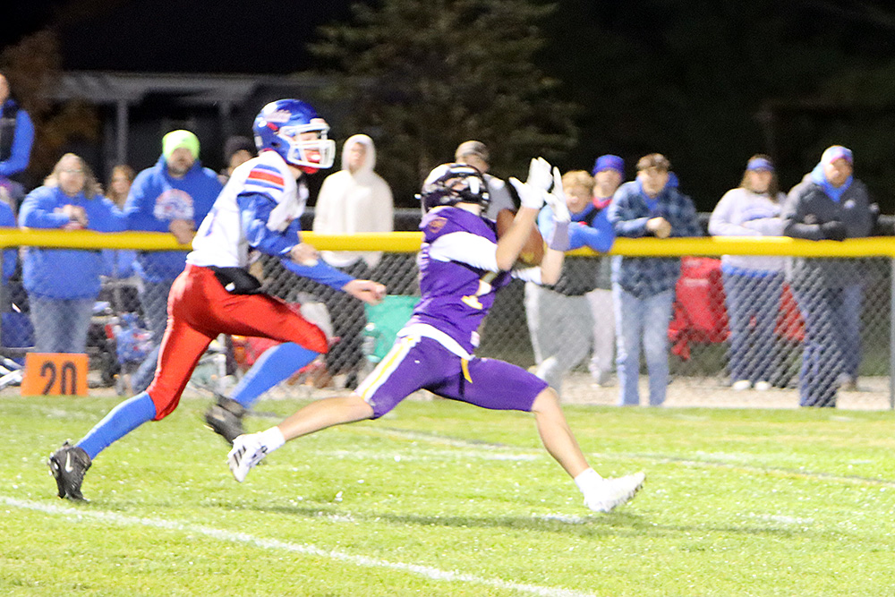 Jack Julius pulls in a 50-yard reception from quarterback Nolan Clement during the Warriors’ opening drive. The play set up Casey-Westfield’s first touchdown in their 35-0 first-round playoff win.