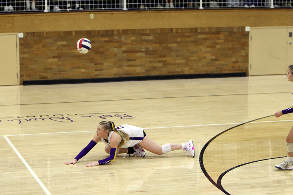 Anna Karras extends to make a dig for Casey-Westfield. In addition to her offensive contributions, Karras was a key defensive player, recording 15 digs during the team’s regional tournament run. —photo by Terri Cox