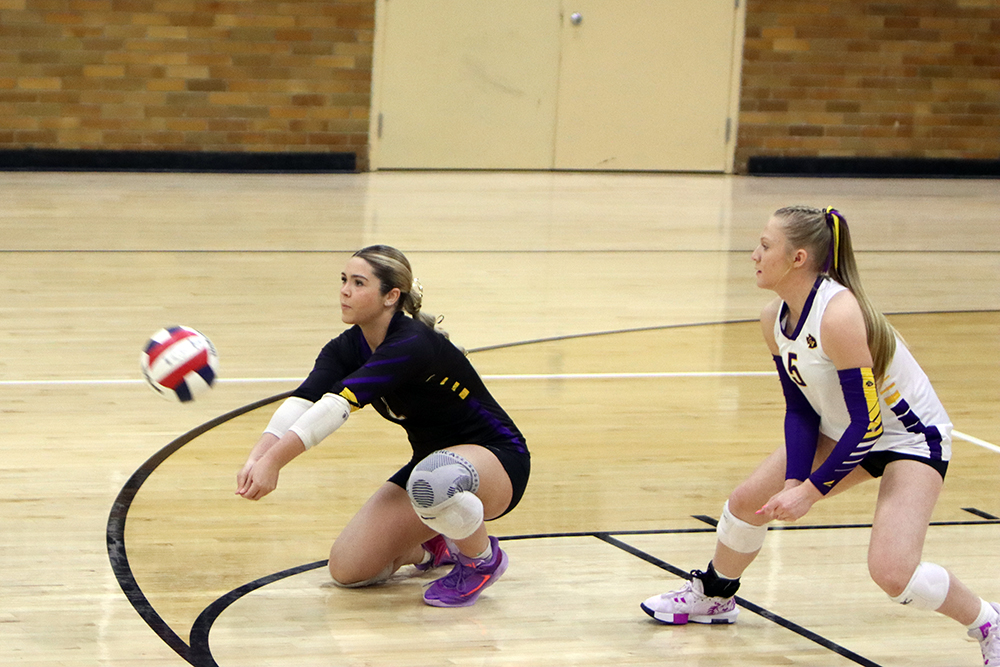 Ava Goble settles in on serve receive to deliver a pass and initiate the Lady Warriors’ offense. Goble was a defensive anchor for the team, tallying 25 digs throughout the regional tournament. —photo by Terri Cox