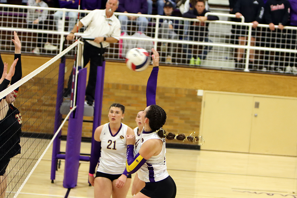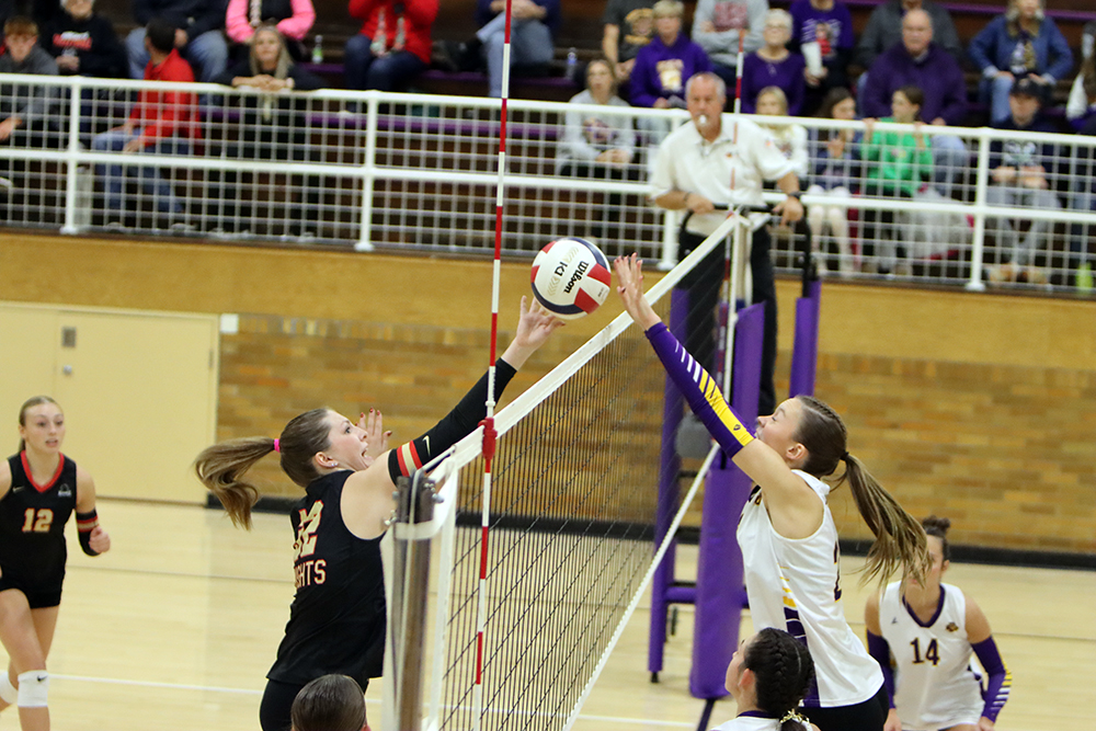 Featured photo caption: Madilyn Gelb forms a solid wall at the net, shutting down an opponent’s attack with a block. Gelb contributed two blocks and was also one of the team’s most efficient hitters during their postseason run. —photo by Terri Cox