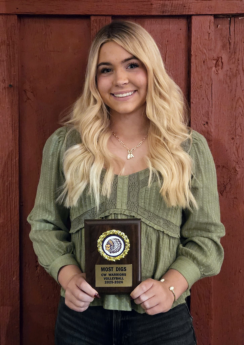 Senior Ava Goble was honored with the Most Digs Award at the annual banquet. Goble anchored the Lady Warriors’ defense throughout the successful 2024 campaign, recording 350 digs.